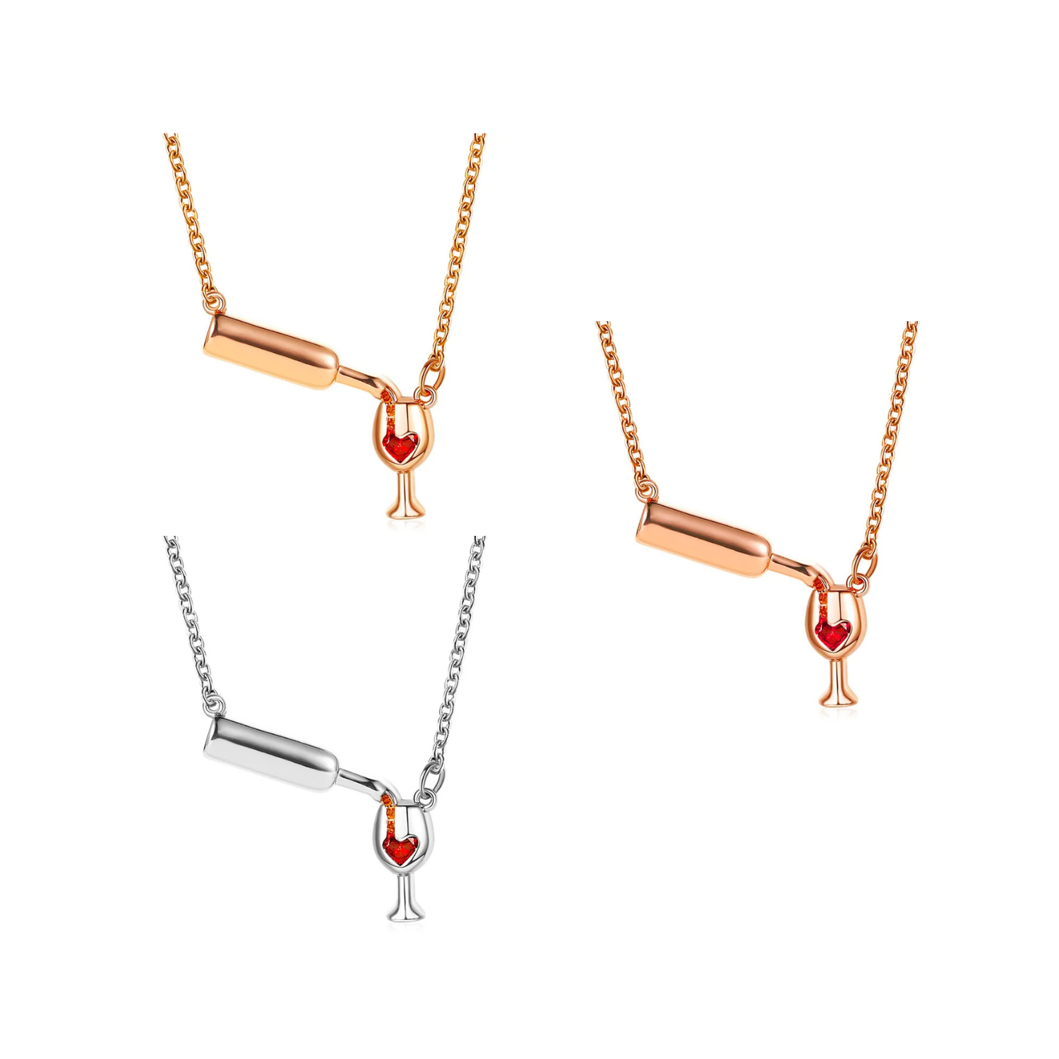 Add a touch of charm and sophistication to any outfit with this Elegant Wine Bottle Pendant Necklace. Crafted from high-quality copper and polished to a beautiful shine, this necklace features a delicate wine bottle and cup design adorned with a vibrant red zircon crystal. Perfect for parties, banquets, anniversaries, or festive occasions, it brings a unique blend of elegance and playful fashion that enhances any look. With a pendant size of 1.5 x 2.5 cm (0.59 x 0.98 in) and an adjustable 44 + 5 cm chain (19 in), this piece is designed to fit comfortably and beautifully, making it a wonderful addition to any jewelry collection.